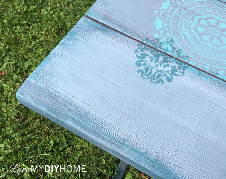 6. After you are satisfied with the amount of distressing and amount of color showing through, add a topcoat if you desire. This would be a good project for antiquing wax over top as it would emphasize the distressed parts and add an antique look.